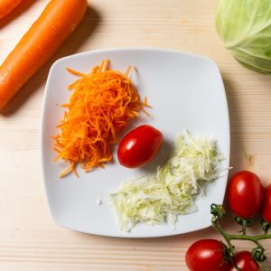 Ingredienti: in proporzione variabile cappuccio, carote, pomodoro.