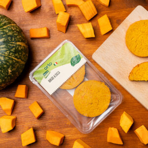 Ingredienti: zucca 46%, patate, pane (farina di frumento, acqua, sale, lievito), cipolle, carote, olio extravergine d’oliva, sale, paprica, rosmarino, noce moscata.